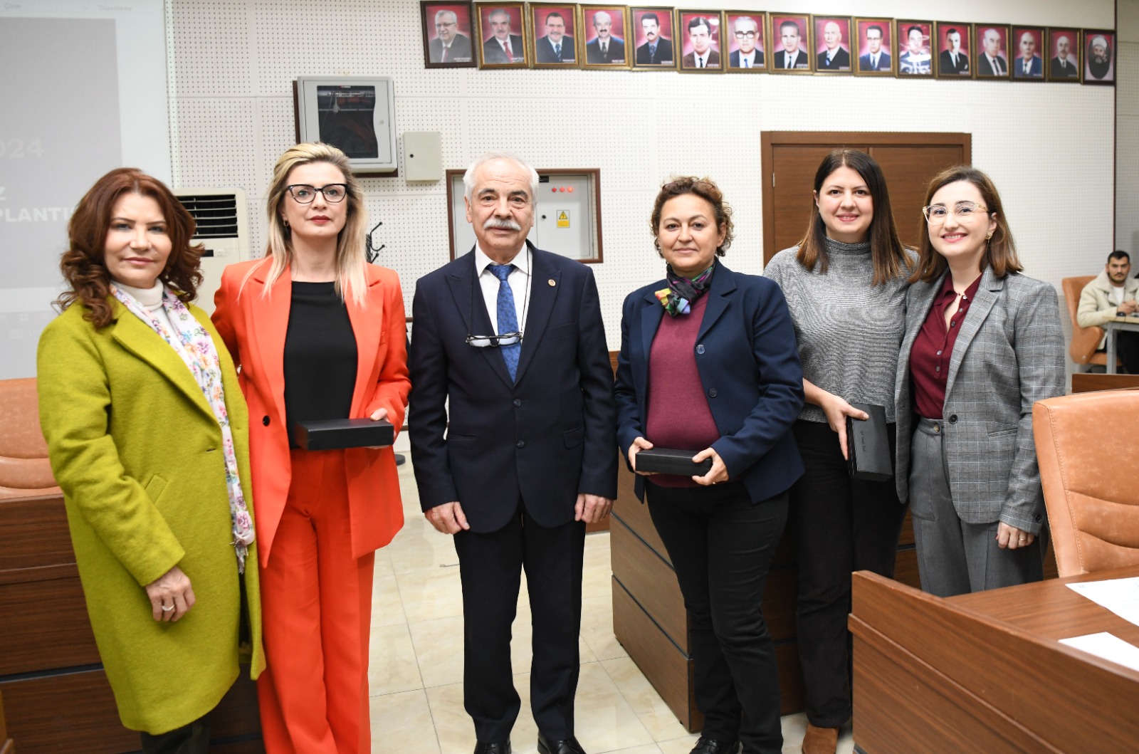Konuşmanın ardından kadın meclis üyelerine Başkan Özcan tarafından günün anısına kalem hediye edildi.