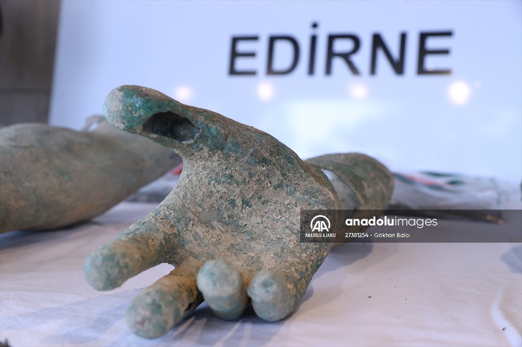 Açılan paketlerde çeşitli türlerde toplam 66 kalemde 15 bin 751 taşınır kültür varlığı olduğu değerlendirilen tarihi eser ele geçirilmiş, müze yetkililerinin ön tespitinde parçalar erken Bizans dönemine tarihlendirilmiş, sikke ve bronz heykel parçaları Eserler Edirne Müze Müdürlüğüne teslim edilmişti.
