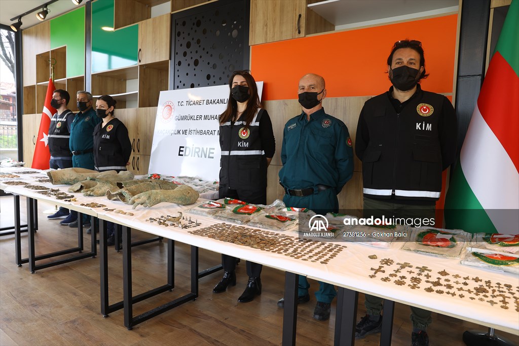 Kapıkule Sınır Kapısı’nda bir tırda ele geçirildikten sonra Edirne Müzesine teslim edilen eserlerin, tasnif sonucu 14 bin 700 bakır, bronz, gümüş ve altın sikke ile bronz heykel parçalarının da arasında yer aldığı 700 arkeolojik ve etnografik eser olduğu belirlendi.
