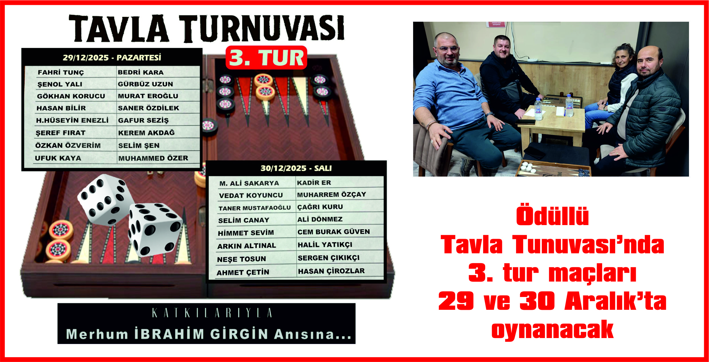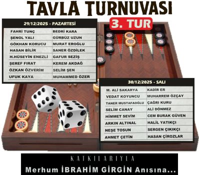 Merhum İbrahim Girgin anısına geleneksel olarak düzenlenen Ödüllü Tavla Turnuvası’nda 2. tur da tamamlandı.