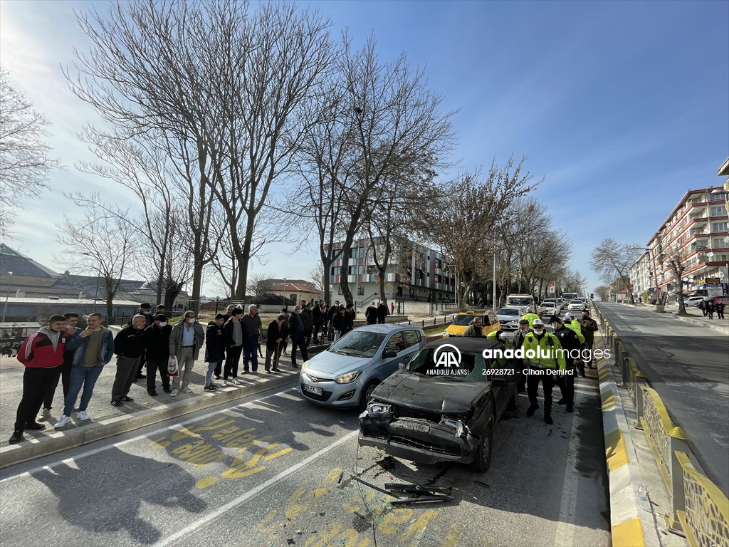 Edirne’de bir otomobilin yayalara yol veren araca arkadan çarpması sonucu 2 kişi yaralandı.
