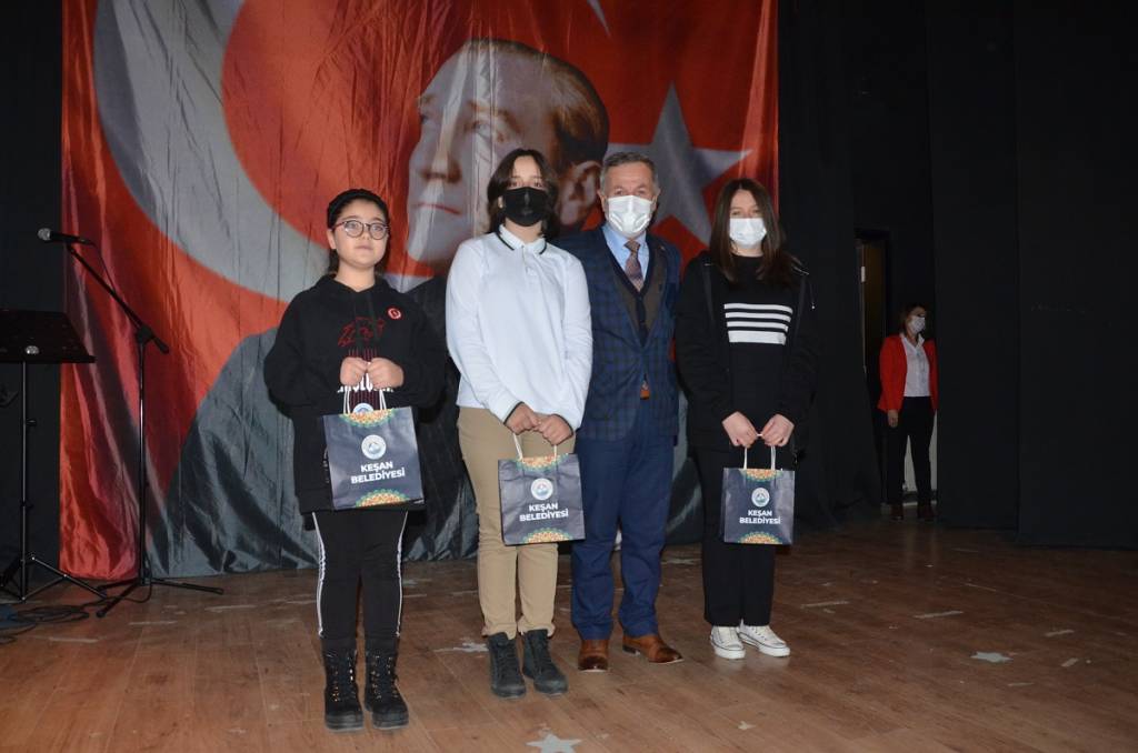 Yarışmaların üçüncüleri olan Bahçeşehir İlkokulu öğrencisi Ceylin Salt, Feride Mehmet Çuhacı Ortaokulu öğrencisi Ayça Akıncı, Keşan Anadolu Lisesi öğrencisi Seminay Yavaşoğlu’na ikincilik ödülü Keşan Belediyesi Başkan Yardımcısı Nuran Uslu tarafından verildi.