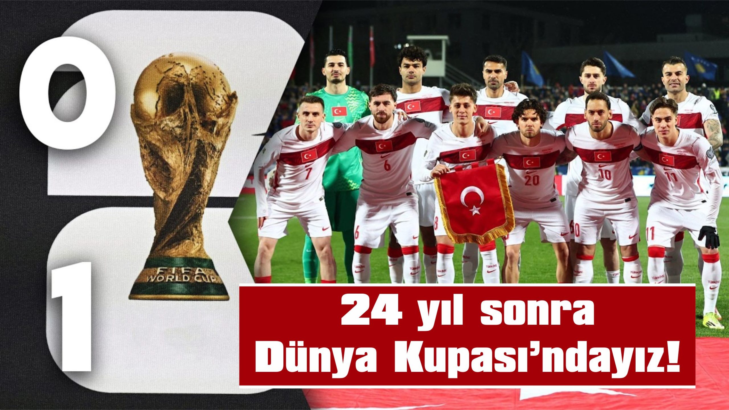 A Milli Futbol Takımımız, 2026 FIFA Dünya Kupası Avrupa Elemeleri Play-Off Finali’nde deplasmanda Kosova’yı 1-0 yenerek, 24 yıl sonra Dünya Kupası’na katılma hakkı kazandı.