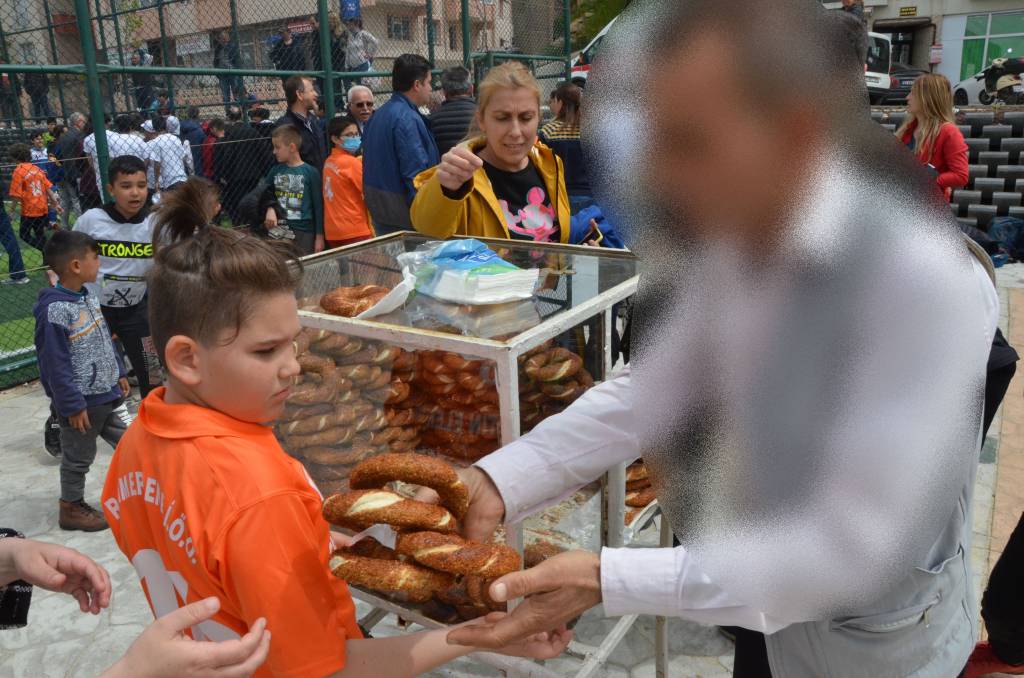 Bugün Keşan Belediyesi tarafından düzenlenen kupa törenine katılan Keşan Belediye Başkanı Mustafa Helvacıoğlu, etkinlikte bulunan küçük futbolculara simit ikram etti.