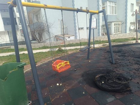 Yukarı Zaferiye Mahallesi Eski Devlet Hastanesi arkasındaki Neşeli Parkt’a gelen bir grup genç, parkta ateş yaktı. Daha sonra ise önce çevrede ne varsa, arından da salıncakları söküp ateşe attı.