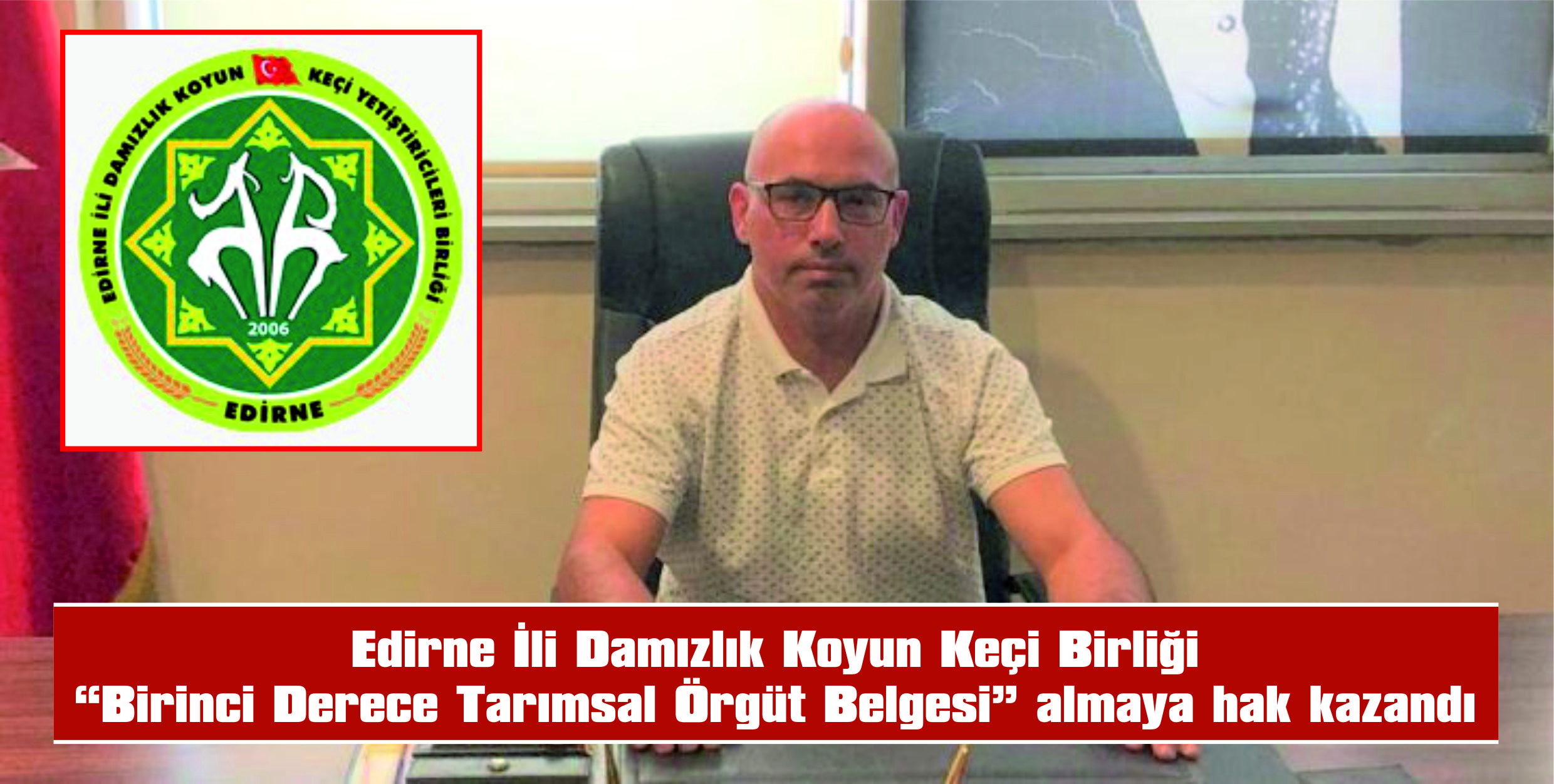 Edirne İli Damızlık Koyun Keçi Yetiştiricileri Birliği Başkanı Arif Hikmet Akbay, yaptığı yazılı açıklamada, “Birinci Derece Tarımsal Örgüt Belgesi” almaya hak kazandıklarını bildirdi.