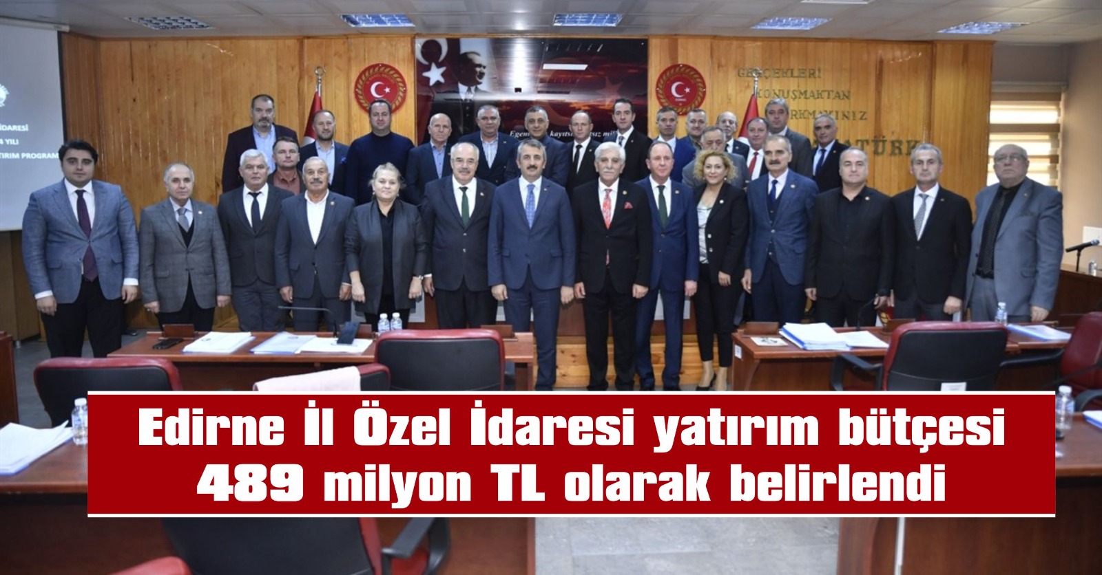 Edirne İl Genel Meclisinin Kasım ayı olağan toplantıları sona ererken, İl Özel İdaresinin yatırım bütçesi 489 milyon TL olarak belirlendi, Keşan’a ise 53 milyon TL’lik yatırım bütçesi kesinleşti.