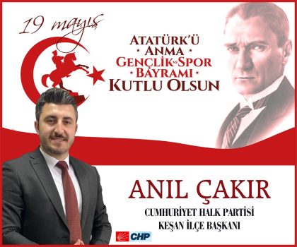 CHP Keşan İlçe Başkanı Anıl Çakır’ın 19 Mayıs Atatürk’ü Anma, Gençlik ve Spor Bayramı mesajı şöyle: “19 Mayıs umuttur, 19 Mayıs onurdur, emperyalizme karşı emsali görülmemiş bir direniştir. 19 Mayıs çaresizliğin, esaretin bittiği gündür. 19 Mayıs, Samsun’dan doğup tüm yurda yayılan güneştir.
