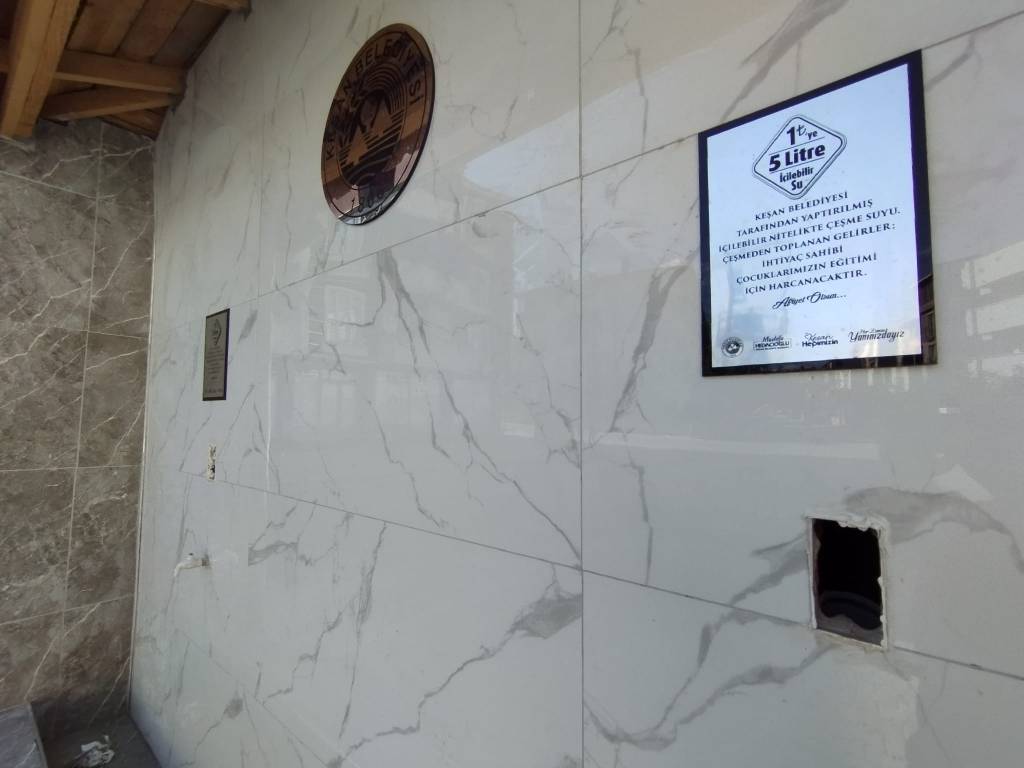 Eczacı Osman Sayan’ın eşi Eczacı Feyhan Sayan tarafından İspat Cami Mahallesi’ne yaptırılan hayır çeşmesinin para haznesi çalındı.