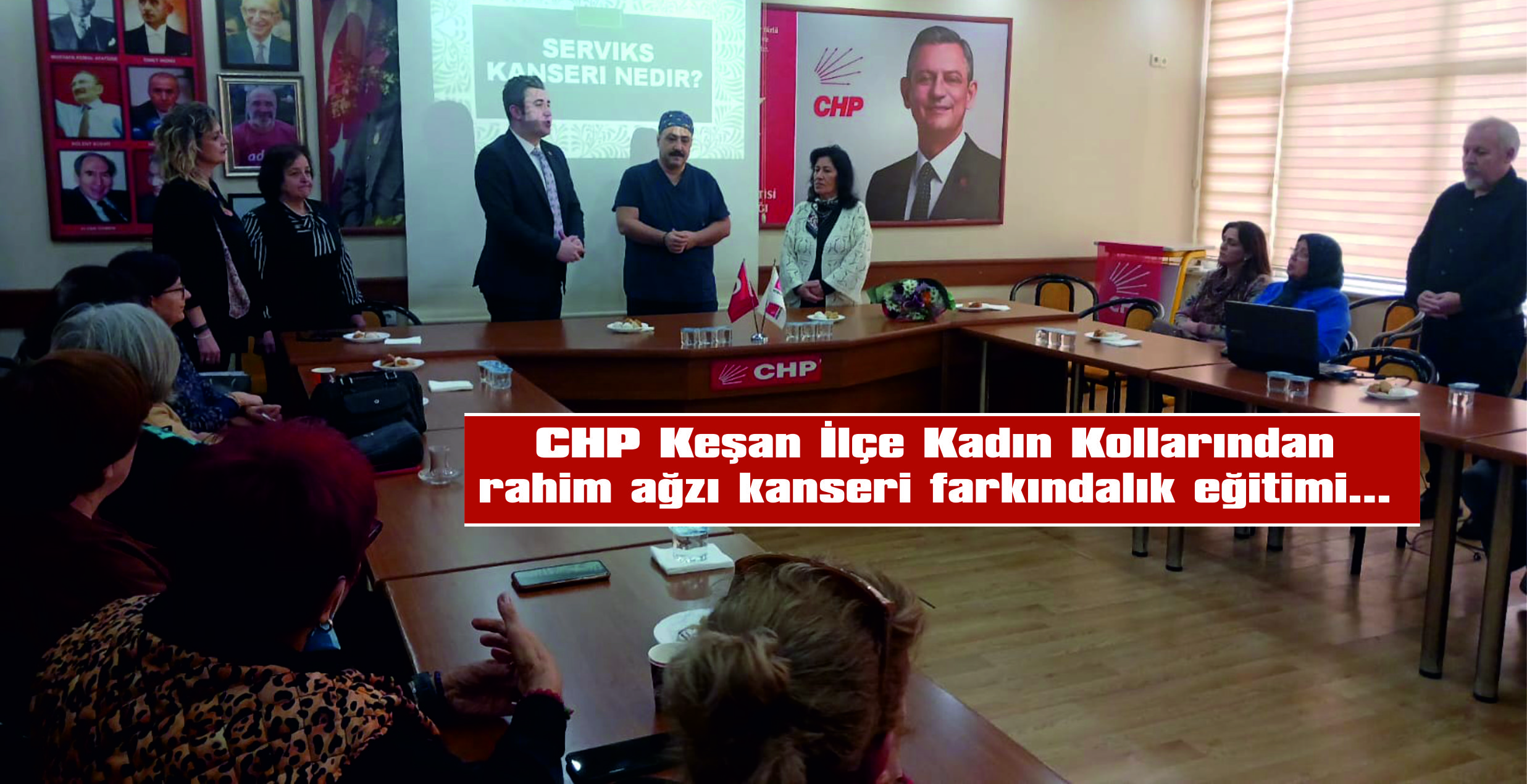 Cumhuriyet Halk Partisi (CHP) Keşan İlçe Kadın Kolları Başkanı Emine Gegeoğlu öncülüğünde, kadın sağlığına dikkat çekmek ve farkındalık oluşturmak amacıyla düzenlenen “Rahim Ağzı Kanserleri Farkındalık Eğitimi”, bugün saat 14.30’da CHP Keşan İlçe Başkanı Anıl Çakır’ın katılımıyla Keşan İlçe Başkanlığında gerçekleştirildi.