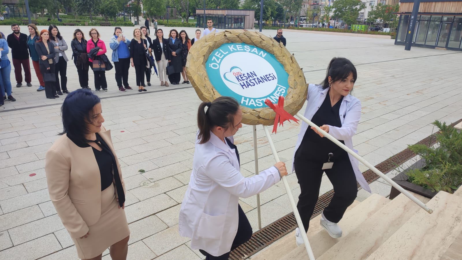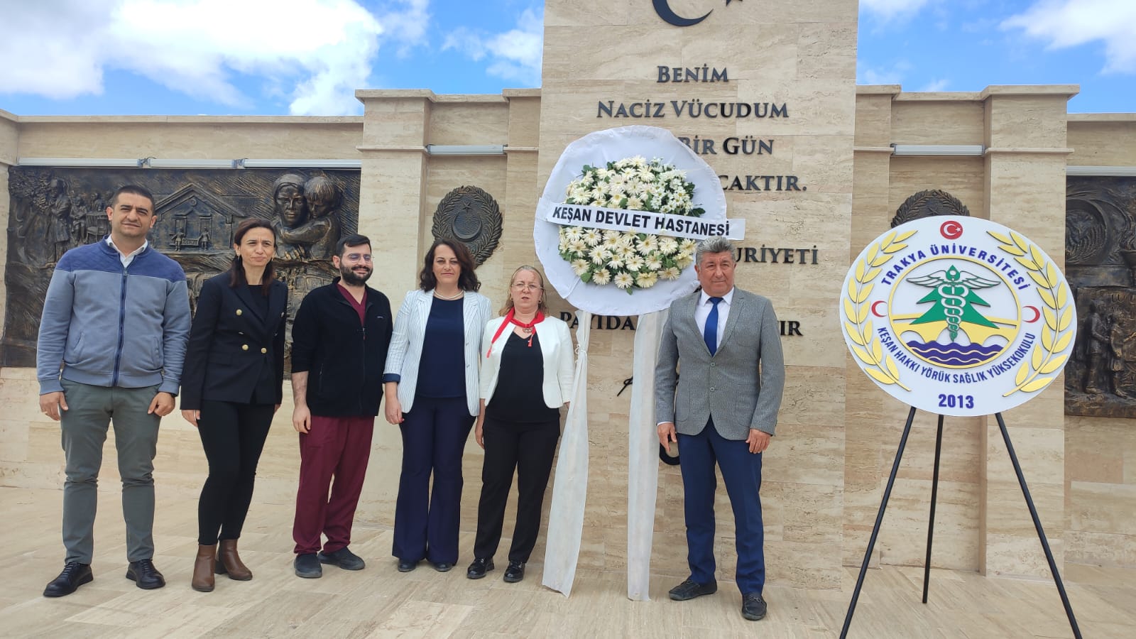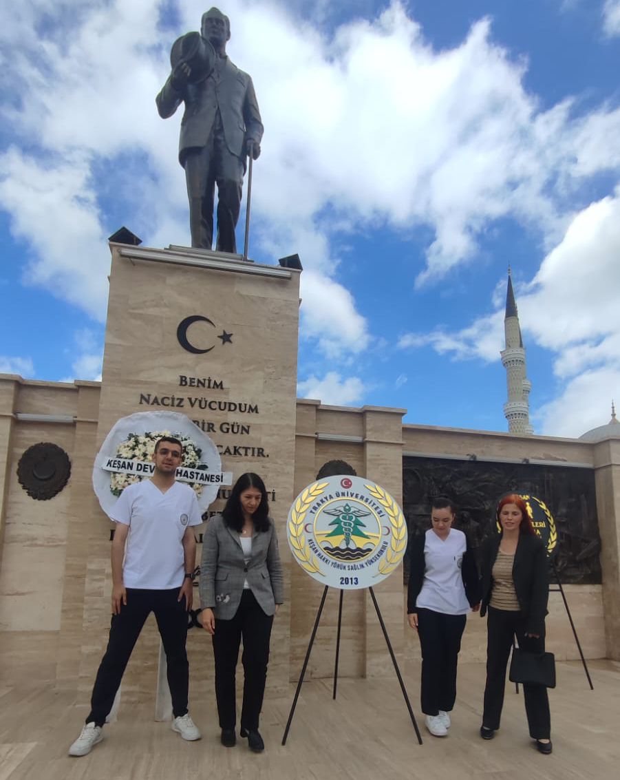 Trakya Üniversitesi Keşan Hakkı Yörük Sağlık Yüksekokulu, Keşan Devlet Hastanesi ve Özel Keşan Hastanesi yönetici ve hemşireleri tarafından Atatürk anıtına çelenk sunulmasının ardından saygı duruşunda bulunuldu ve ardından da İstiklal Marşı okundu.
