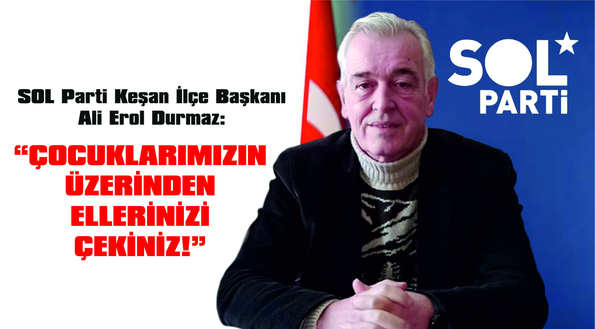 SOL Parti Keşan İlçe Başkanı Ali Erol Durmaz, “Çocuklarımızın üzerinden ellerinizi çekiniz!” başlığı altında yaptığı yazılı açıklamada, eğitimde yaşanan aksaklıklara ve Edirne İl Milli Eğitim Müdürlüğü ile Edirne İl Müftülüğü arasında imzalanan Eğitim İşbirliği Protokolüne dikkat çekti.