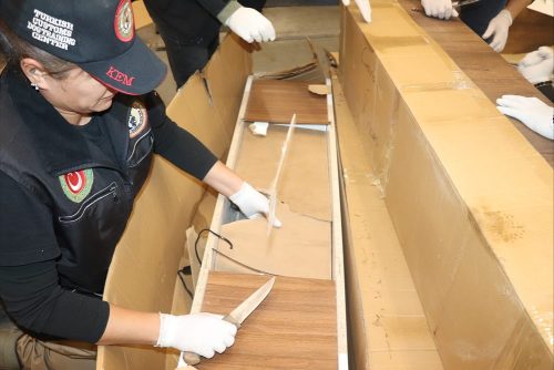Edirne İl Emniyet Müdürlüğü ile Gümrük Muhafaza Kaçakçılık ve İstihbarat Müdürlüğü ekiplerince Kapıkule Gümrük Kapısı’nda durdurulan TIR’larda yapılan aramalarda; 51 kutuda, 365 şeffaf paket içerisinde, 427 kilo 540 gram uyuşturucu ile 44 pakette toplam 66 kilo 400 gram uyuşturucu ham maddesi ele geçirildi. İpsala Gümrük Kapısı’nda durdurulan TIR’da yapılan detaylı incelemede de; televizyon ünitesinin boşluklarına yerleştirilmiş, 30 vakumlanmış, poşet içerisinde toplam 96 kilo 796 gram uyuşturucu bulundu.
