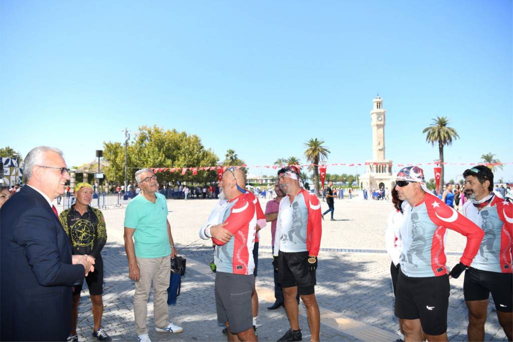 “KUTSAL BAYRAĞIMIZI 650 KİLOMETRE PEDAL ÇEVİREREK İZMİR VALİLİĞİMİZE TESLİM ETMEKTEN ONUR DUYUYORUZ”