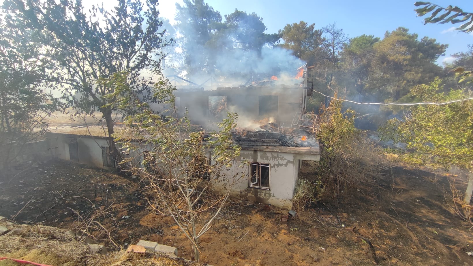 Anızda başlayan alevler, akaryakıt istasyonunun bitişiğindeki atıl durumda olan bir yapıya sıçradı. Yapının bahçesinde ve içerisinde bulunan saman balyaları da alev aldı.