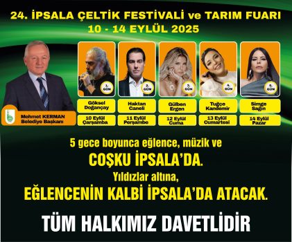 İpsala, 10–14 Eylül tarihleri arasında büyük bir etkinliğe ev sahipliği yapacak. 24. İpsala Çeltik Festivali ve Tarım Fuarı, tarım sektörünün buluşma noktası olurken aynı zamanda ünlü sanatçıların konserleriyle de şenlenecek.