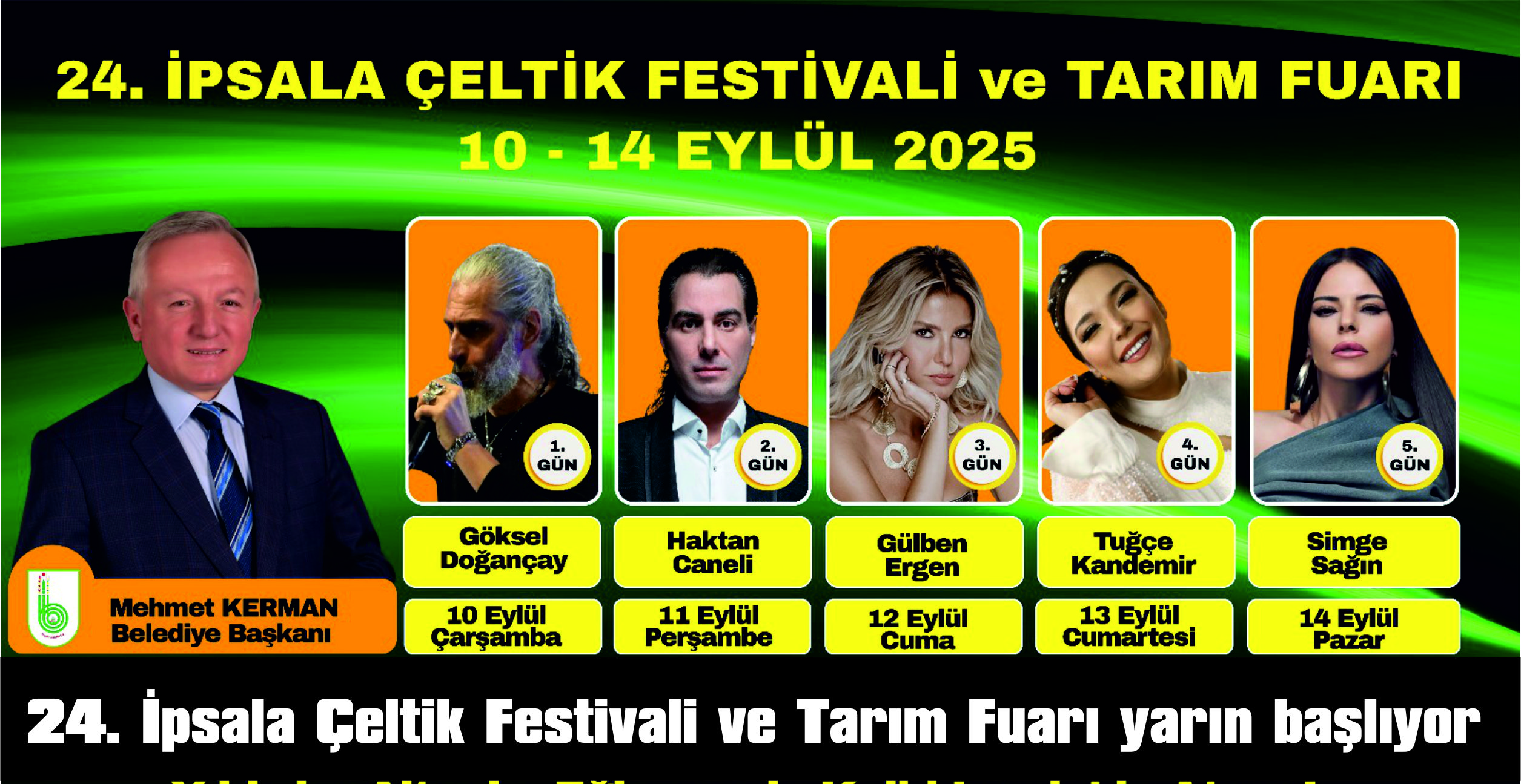 İpsala Belediye Başkanı Mehmet Kerman, “Festivalimizde tarım fuarı, konserler ve güreşler ile binlerce kişiyi İpsala’da buluşturacağız. Tüm bölge halkını davet ediyoruz.” dedi.