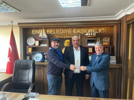 Şube Başkanı Erdoğan Demir ile Başkan Yardımcısı Orçun Oğuz, Enez Belediye Başkanı Özkan Günenç’i makamında ziyaret ederek, ödül törenine sağladığı katkı dolayısıyla kendisine plaket vererek, teşekkür etti.
