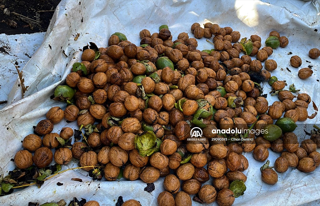 Konuşmaların ardından cevizler hasat edildi. (A.A)