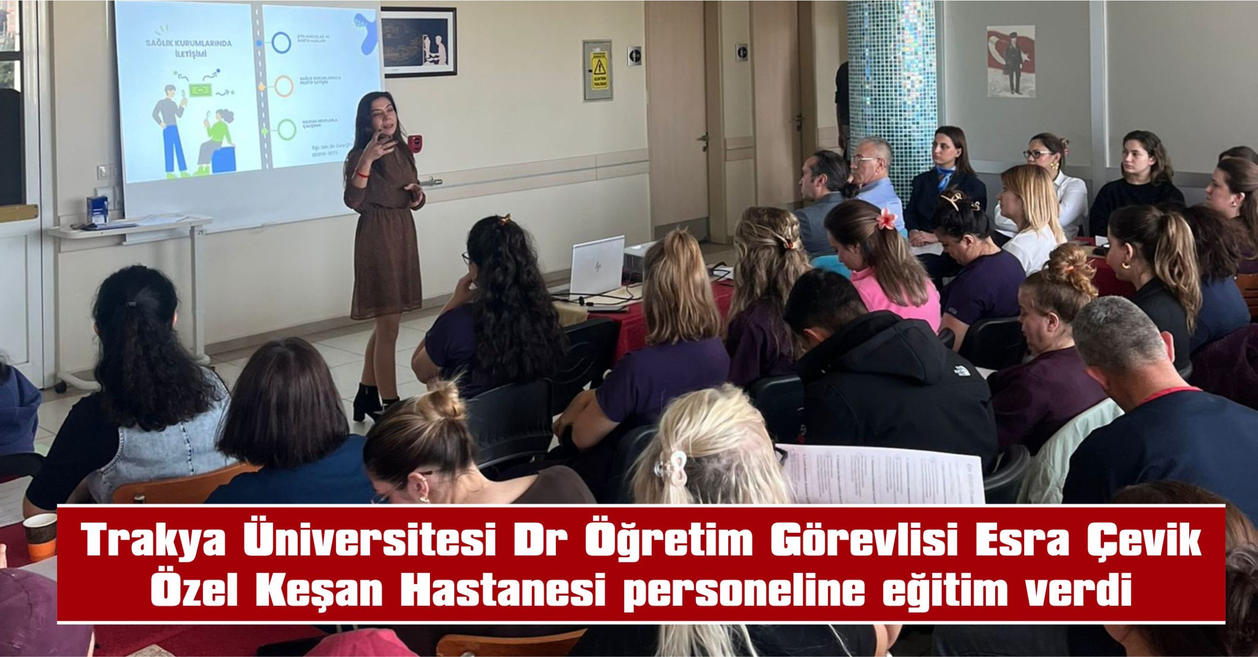 Trakya Üniversitesi Dr. Öğretim Görevlisi Esra Çevik, Özel Keşan Hastanesi personeline iletişim, hasta hakları, hasta memnuniyeti konusunda eğitim verdi.
