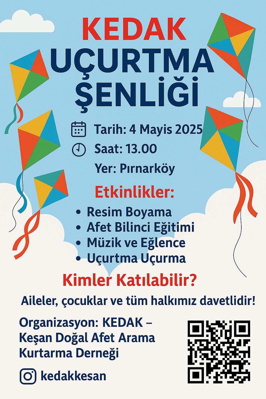 KEDAK (Keşan Doğal Afet Arama Kurtarma Derneği)’nin ‘Uçurtma Şenliği’, 4 Mayıs 2025 Pazar günü gerçekleştirilecek.