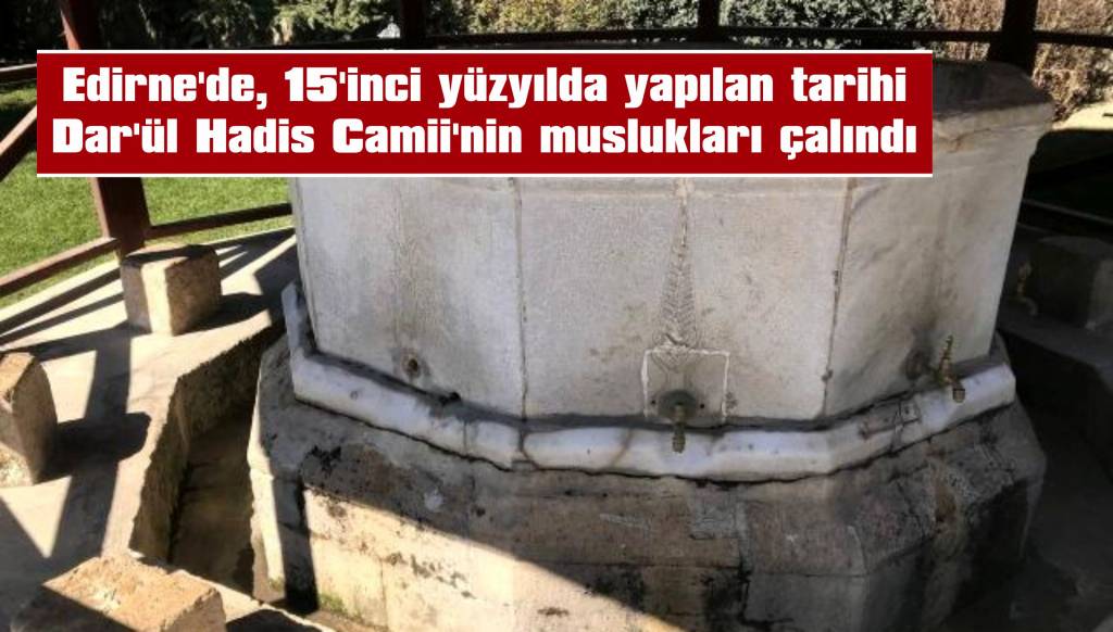Osmanlı padişahı 2’nci Murat’ın emriyle 15’inci yüzyılda yapılan Edirne Dar’ül Hadis Cami’nin şadırvan ile tuvaletindeki 6’sı pirinç olmak üzere 11 musluğu, çalındı.