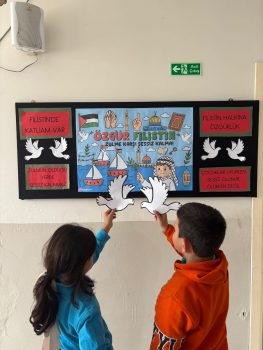 Bugün ülke genelinde tüm okullarda öğrencilerin katılımıyla eşzamanlı olarak Filistin ve Gazze temalı farkındalık etkinlikleri düzenlendi.