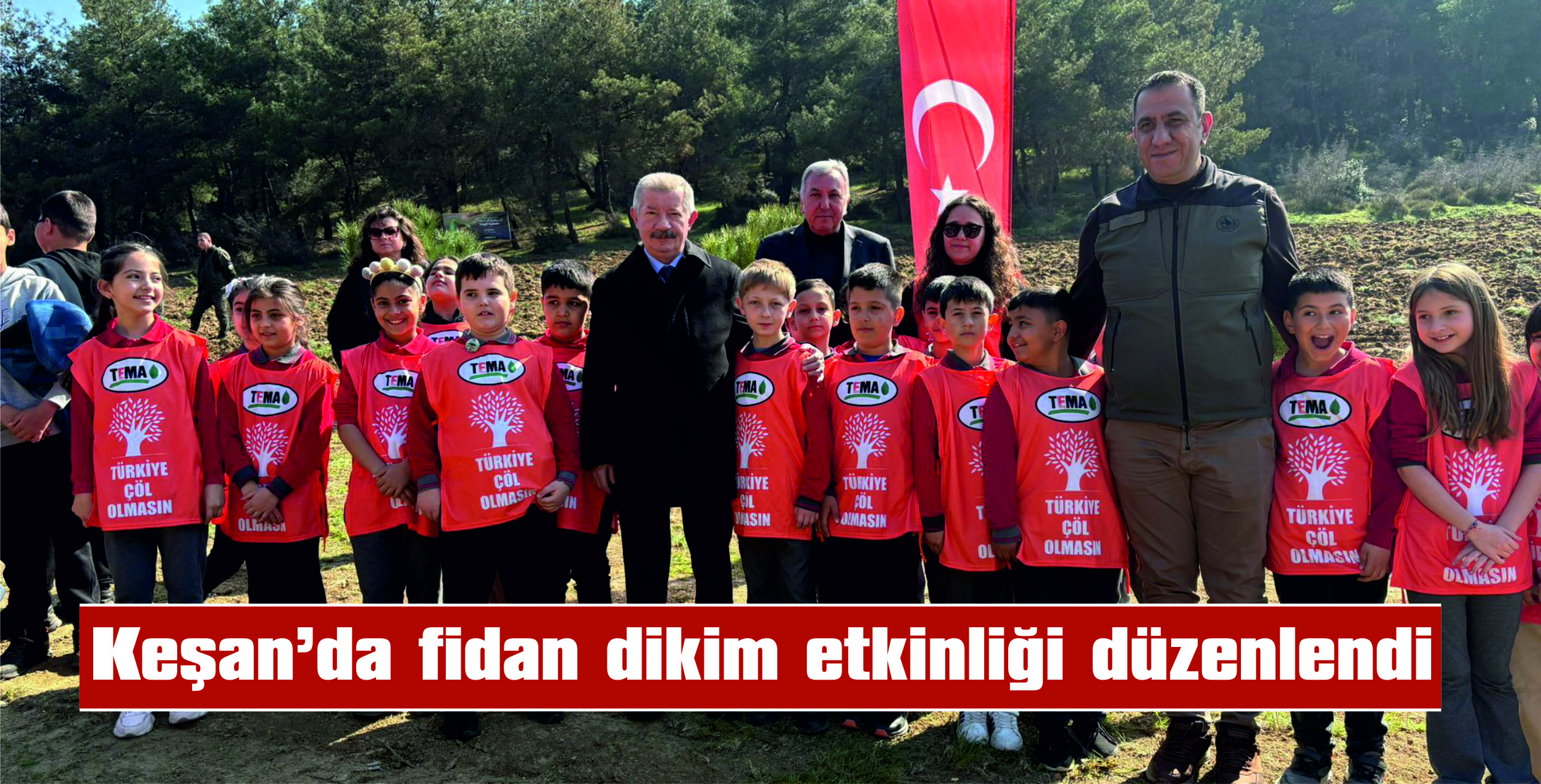 Keşan Kaymakamlığı ve Keşan Orman İşletme Müdürlüğü işbirliğinde bugün gerçekleştirilen etkinlikte, Cennetepe mevkisinde ilkokul öğrencilerinin katılımı ile fidan dikildi.