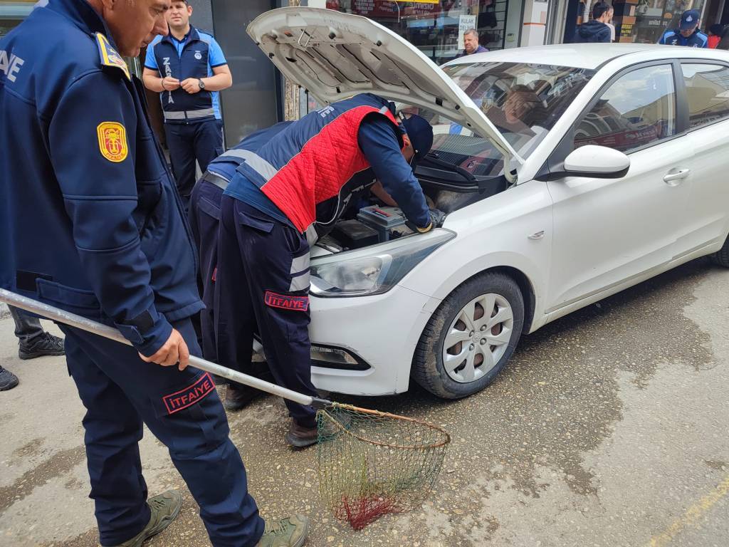 İsmet İnönü Caddesi’nde park halinde bulunan otomobilin motor bölümünden kedi sesi geldiği duyan sürücü, durumu Keşan Belediyesi İtfaiye Müdürlüğü’ne bildirdi.