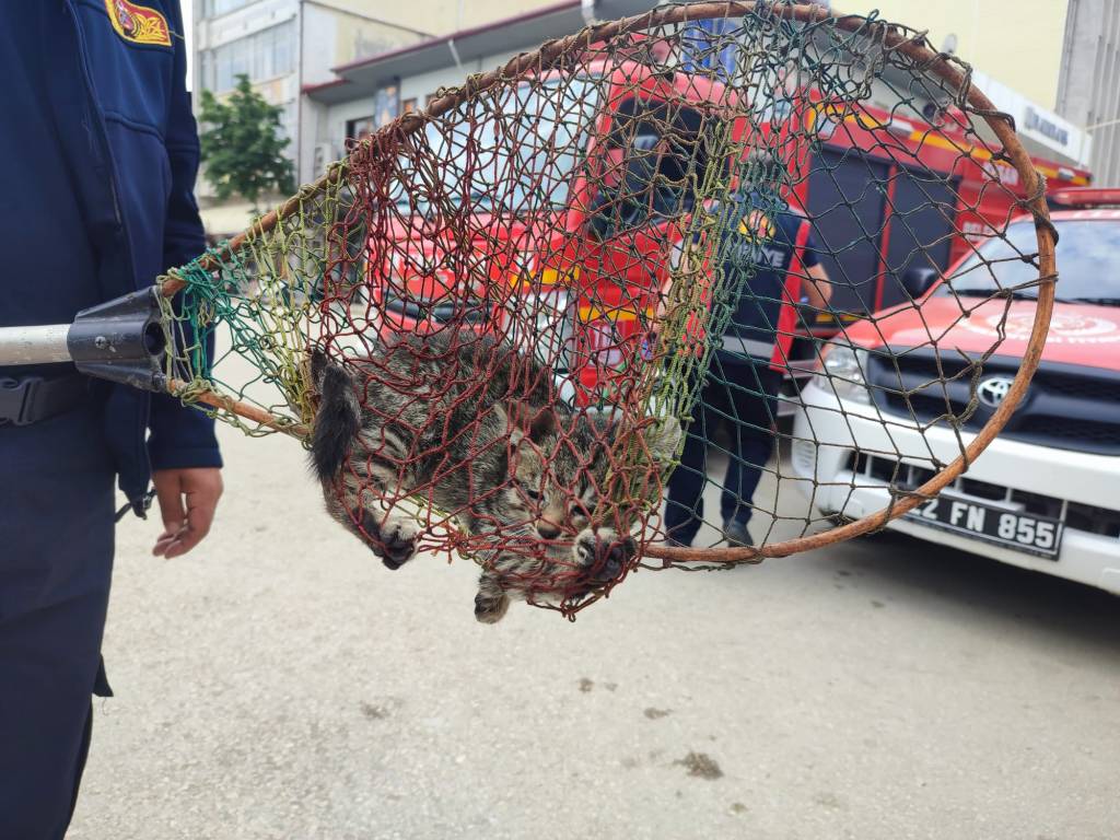 İTFAİYEDEN KEDİ KURTARMA OPERASYONU