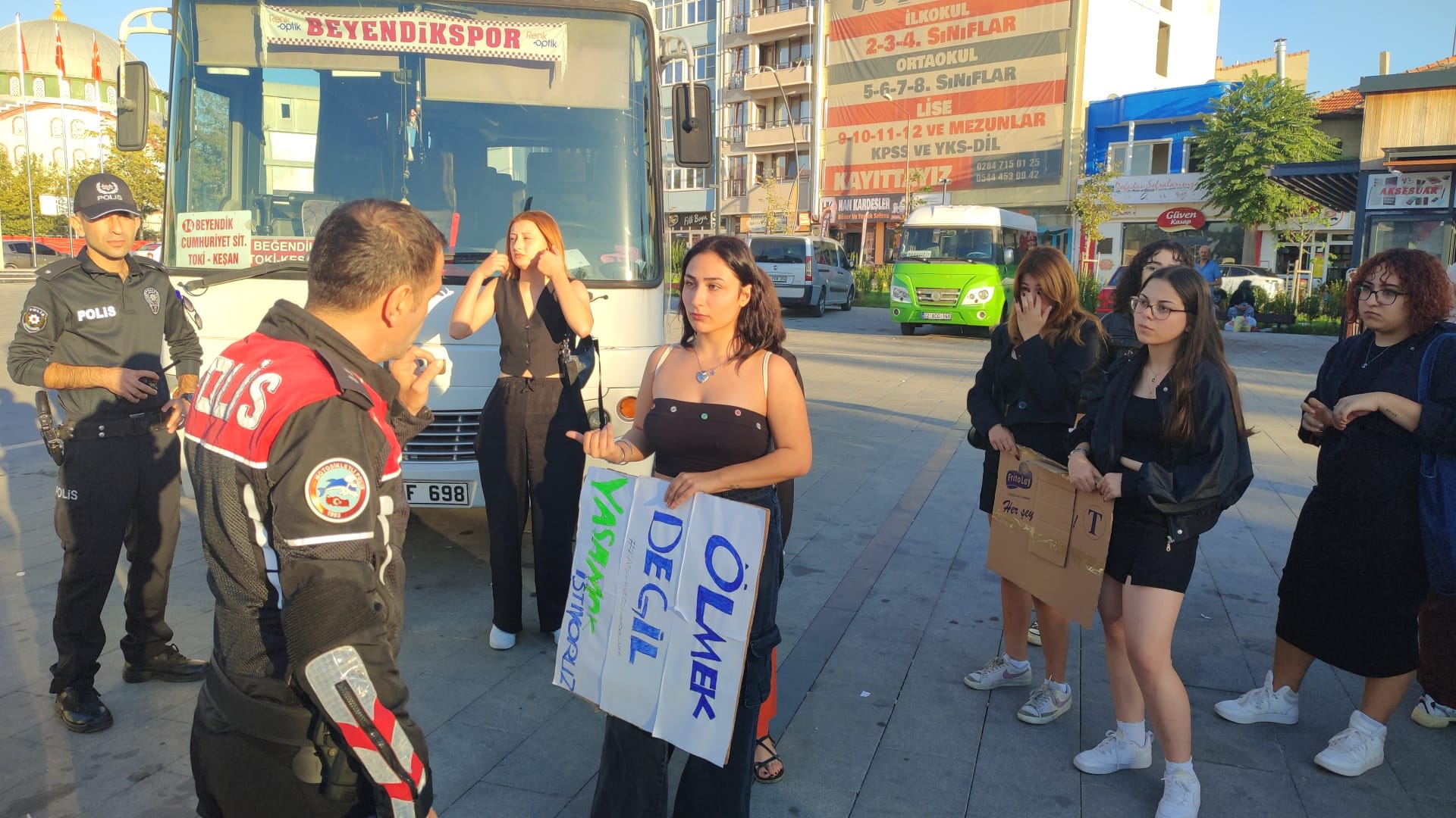 Israrla grubun dağılmasını isteyen polisler de kızlara bir dilekçe ile kaymakamlığa başvurmalarını ve izin alarak eylemlerini yapmaları gerektiğini söyledi.