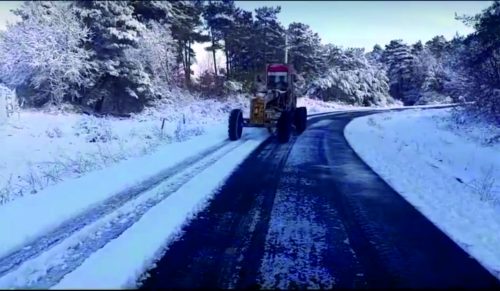 Ekipler, vatandaşların olumsuzluk yaşamaması için greyderler ile yollardaki karları temizlerken, kar yağışına karşı buz çözücü solüsyon döktü.