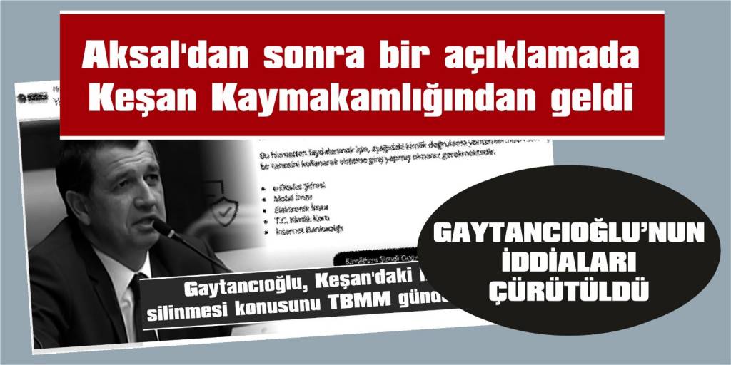 CHP Edirne Milletvekili Okan Gaytancıoğlu’nun, İçişleri Bakanı Süleyman Soylu’nun cevaplaması istemiyle TBMM’ye verdiği soru önergesindeki Keşan’da yaşayan bir vatandaşın ikamet adresinin silindiği yönündeki iddialara, AK Parti Edirne Milletvekili Fatma Aksal’dan sonra Keşan Kaymakamlığından da yazılı açıklama yapılarak, olayın gerçek olmadığı paylaşıldı.