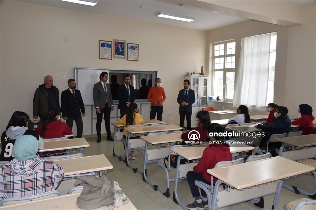 Bu kapsamda ilçedeki tüm öğrencilere su tasarrufu kartuşu dağıtıldı.