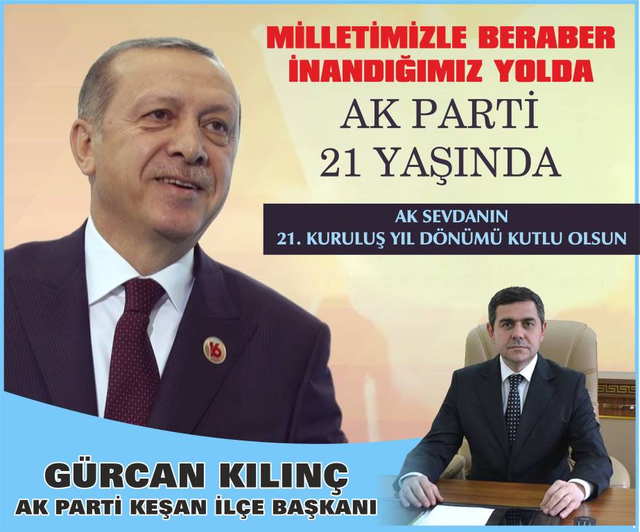 AK Parti Keşan İlçe Başkanı Gürcan Kılınç, AK Parti’nin kuruluşunun 21. yıldönümü nedeniyle yazılı bir açıklama yaptı.