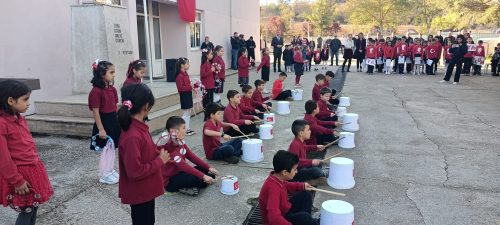 6/A sınıfı öğrencilerinden Aybeniz Kılıç ve Utku Yıldırım’ın “Cumhuriyet Sözleri” adlı şiiri okumasıyla süren program, 2. ve 3. sınıf öğrencilerinin “Hoş Gelişler Ola” ritim gösterileriyle devam etti.