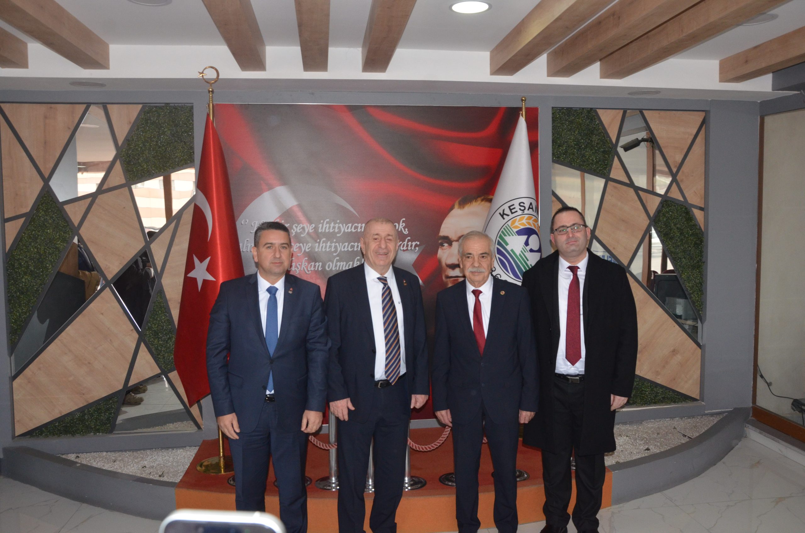 Ümit Özdağ, Türkay Gümülcineli ve beraberindekiler Keşan Ticaret Borsası’nda; Keşan TB Meclis Başkanı Kemalettin Uslu, Keşan TB Yönetim Kurulu Başkanı Necmi Kaymaz ile Meclis ve Yönetim Kurulu üyeleri tarafından karşılandı.