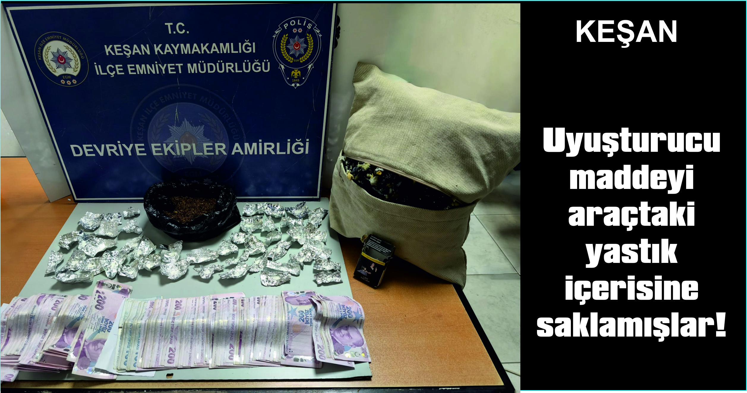 Yapılan incelemede; arç sürücüsü B.H.K. sağ ön yolcu koltuğunda C.K, arka koltukta da S.P, A.C, C.K. ve M.K’nin bulunduğu tespit edildi. Şüpheliler üzerinde bulunan 34.595 TL muhafaza altına alınırken, aracın sağ ön yolcu koltuğu önünde bulunan yastık içerisinde 1 adet poşet içerisinde  daralı ağırlığı 172.99 gr kimyasala bulanmış tütün ve sigara paketi içerisinde  alüminyum folyaya sarılı fişeklenmiş durumda 45 adet  daralı ağırlığı 10.26 gr uyuşturucu madde ele geçirildi.