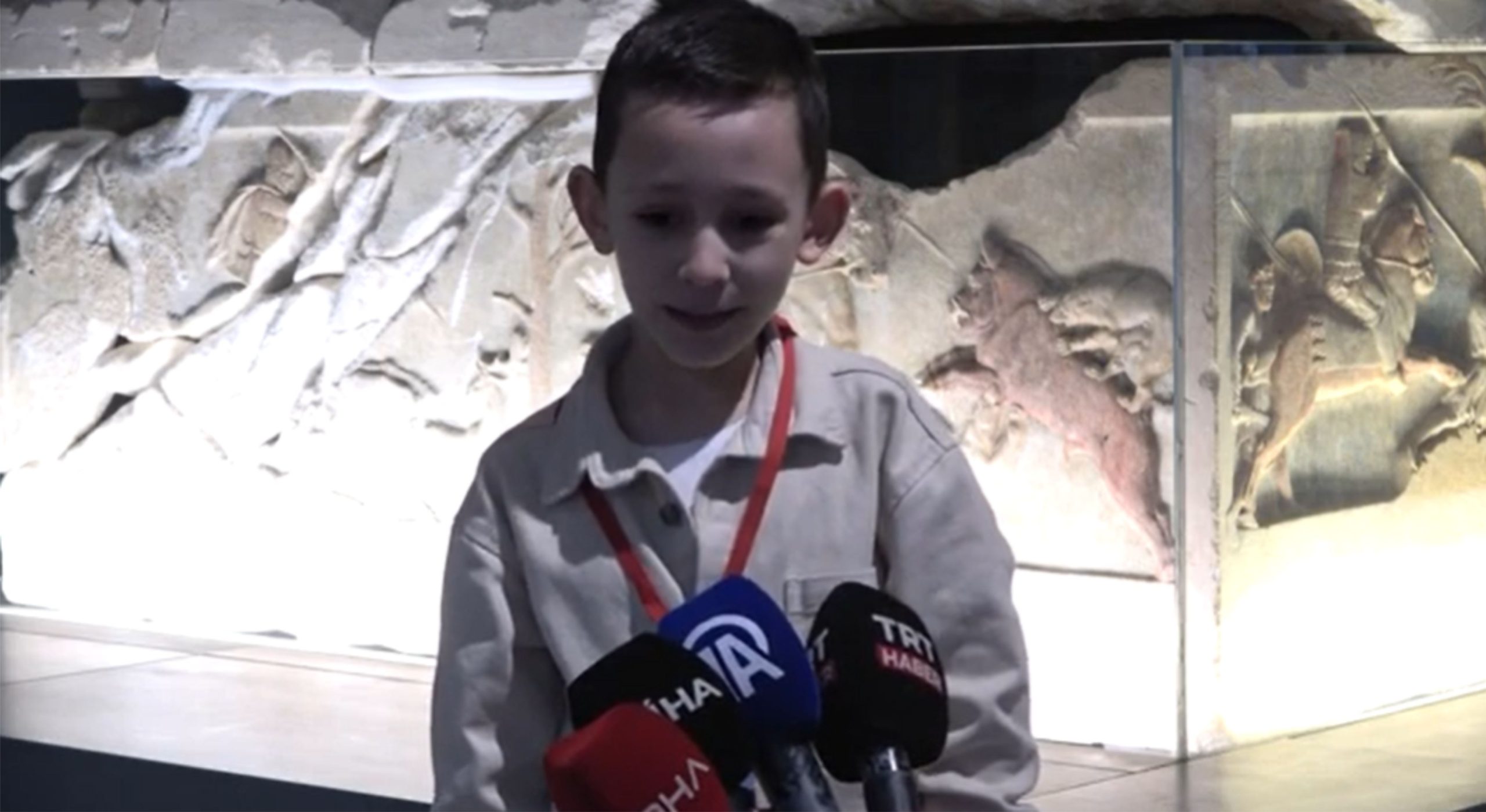 Etkinlikte, müzede rehberlik görevinde bulunan Keşan’dan 8 yaşındaki Bulut Asilkan ise “Müzeyi ele geçirme gününde rehber olarak görev yapıyorum. Şu anda Pers döneminden bir lahitin önünde duruyoruz. Lahitin üzerinde av yapan bir Pars askeri var. Pers askeri köpekleriyle birlikte yaban domuzu avlıyor.” diye konuştu.