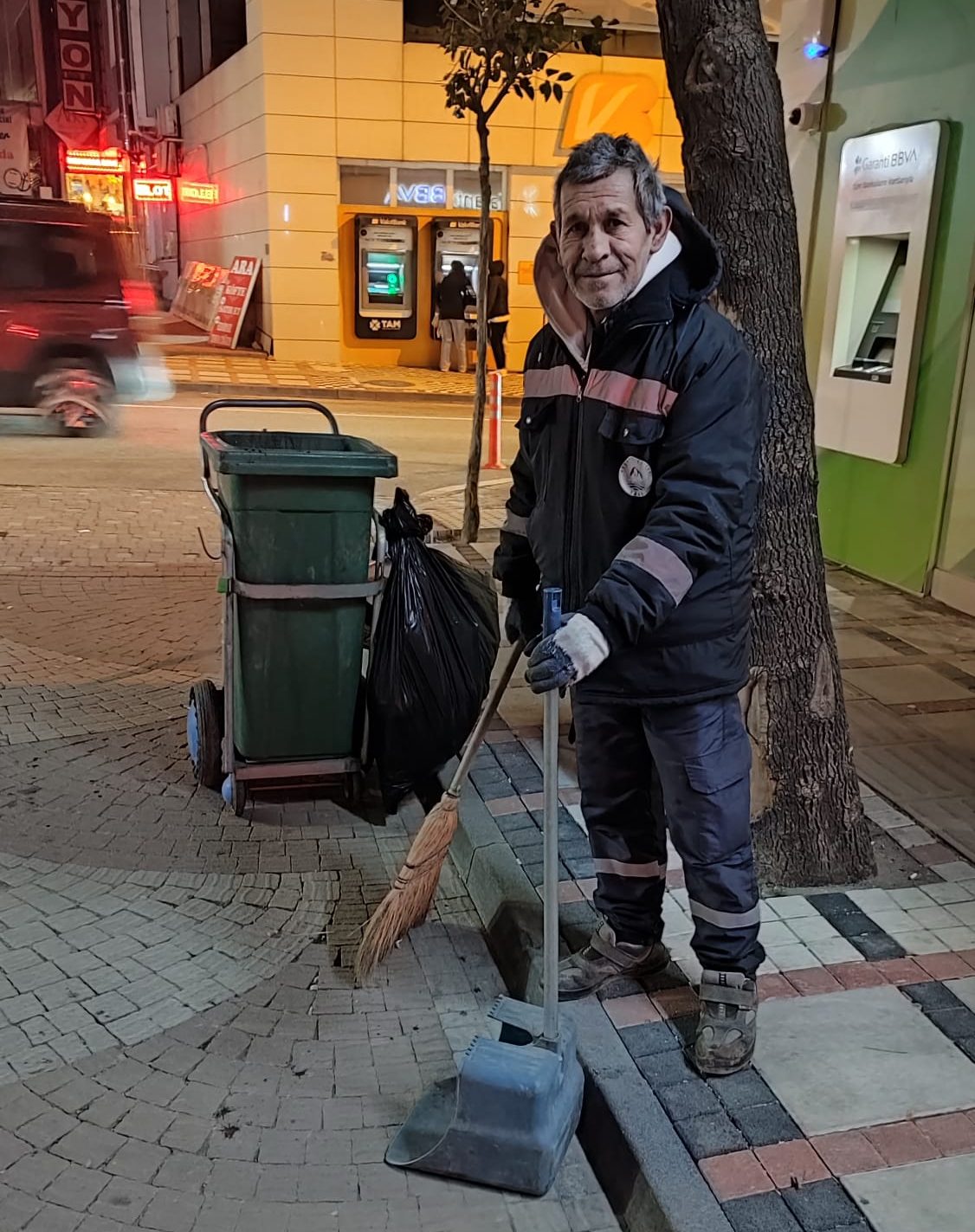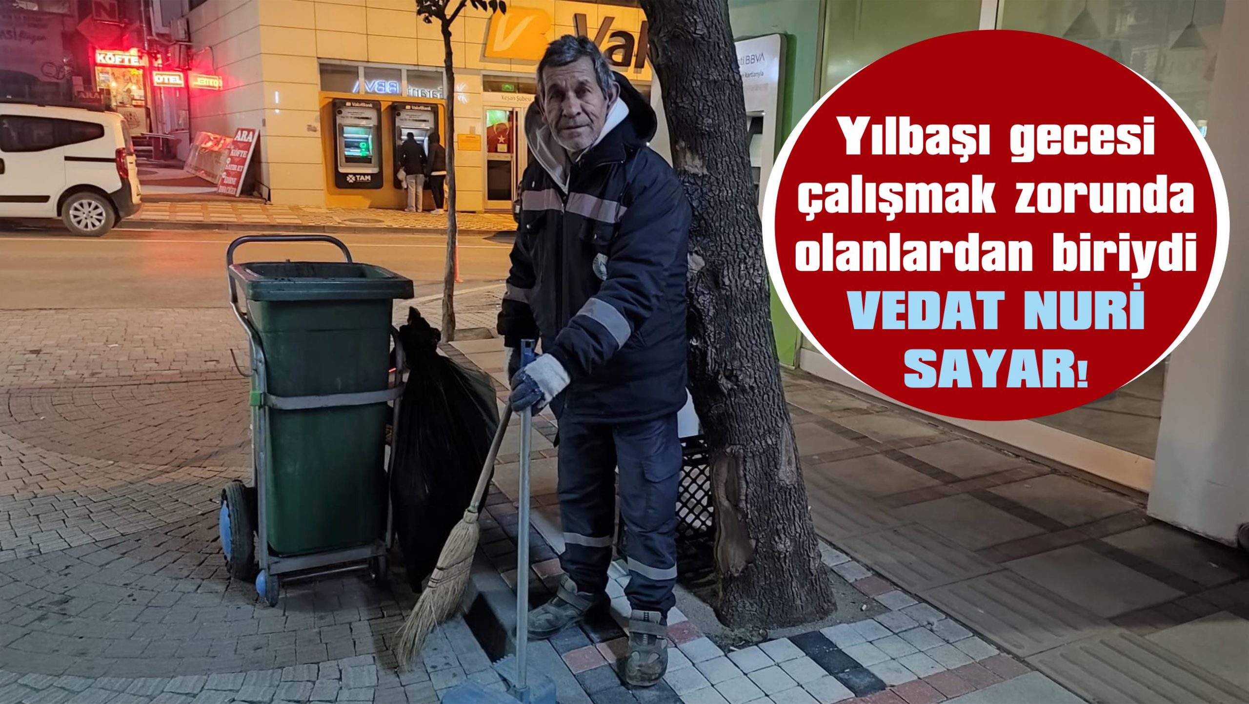 Yılbaşı gecesi sevdiklerinin yanında olmak yerine ailesine ekmek götürebilmek için çalışmak zorunda kalanlardan biri de Keşan Belediyesi Temizlik İşleri Müdürlüğü Personeli Vedat Nuri Sayar oldu.