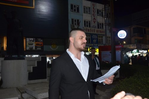 Yürüyüş sırasında Keşan Ülkü Ocakları Başkanı Yiğit Yamalı tarafından basın açıklaması yapıldı.