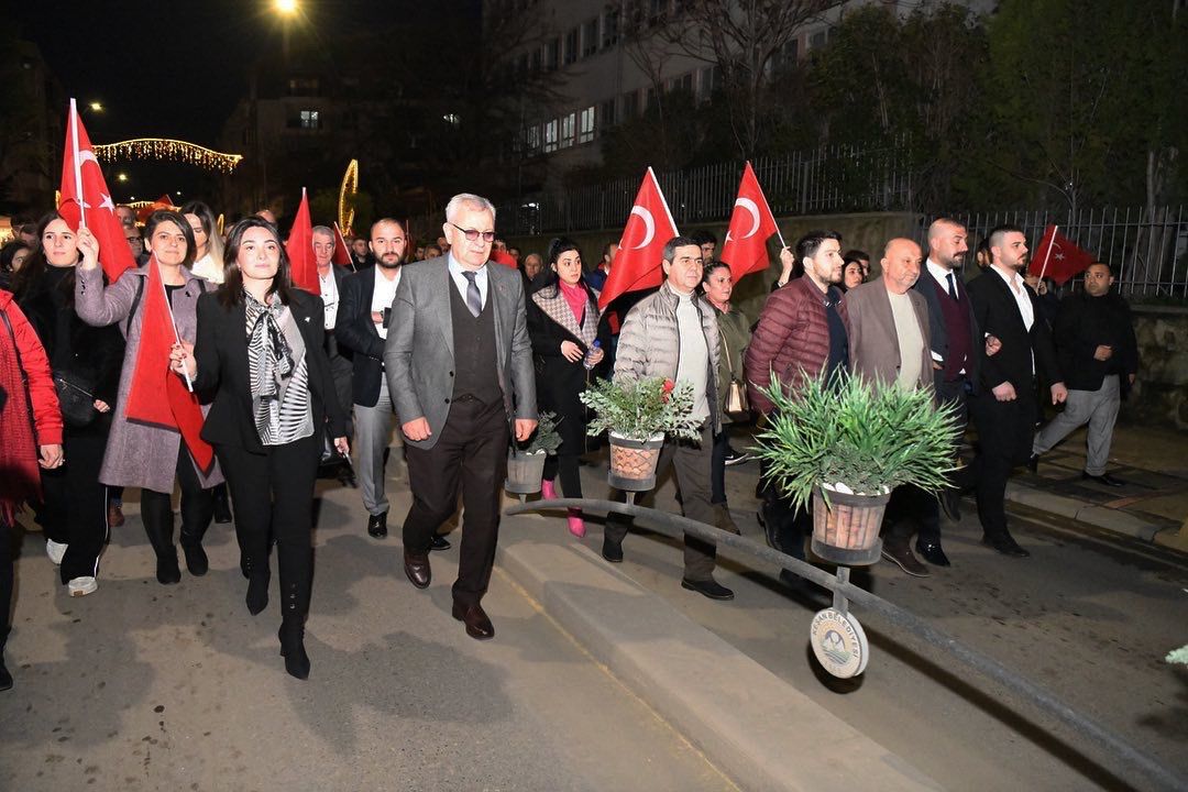 Dev Türk bayrağı ile yapılan yürüyüşe; Keşan Belediye Başkanı Mustafa Helvacıoğlu, MHP Edirne İl Başkanı Emre Tokluoğlu, AK Parti Keşan İlçe Başkanı Gürcan Kılınç, MHP Keşan İlçe Başkanı Adnan İnan, MHP’nin Keşan Belediye Başkan Aday Adayı Serdar Duman, MHP’nin İpsala Belediye Başkan Adayı Aybike Şimşek, Keşan Ülkü Ocakları Başkanı Yiğit Yamalı, Keşan Ülkü Ocakları üyeleri ve vatandaşlar katıldı.