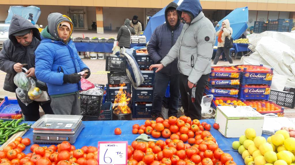 Keşan halk pazarındaki pazarcı esnafı, bugün hava sıcaklığının sıfır derecenin altına düşmesi nedeniyle zor anlar yaşadı.