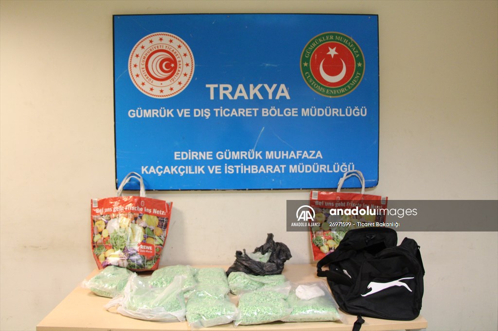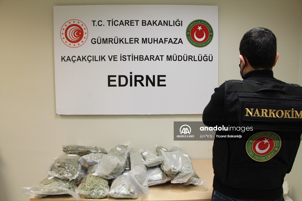 Edirne Gümrük Muhafaza Kaçakçılık ve İstihbarat Müdürlüğü ekiplerince, sınır kapısında şüpheli araçlar X-ray taramasından geçirildi ve narkotik dedektör köpeklerle kontrol edildi.