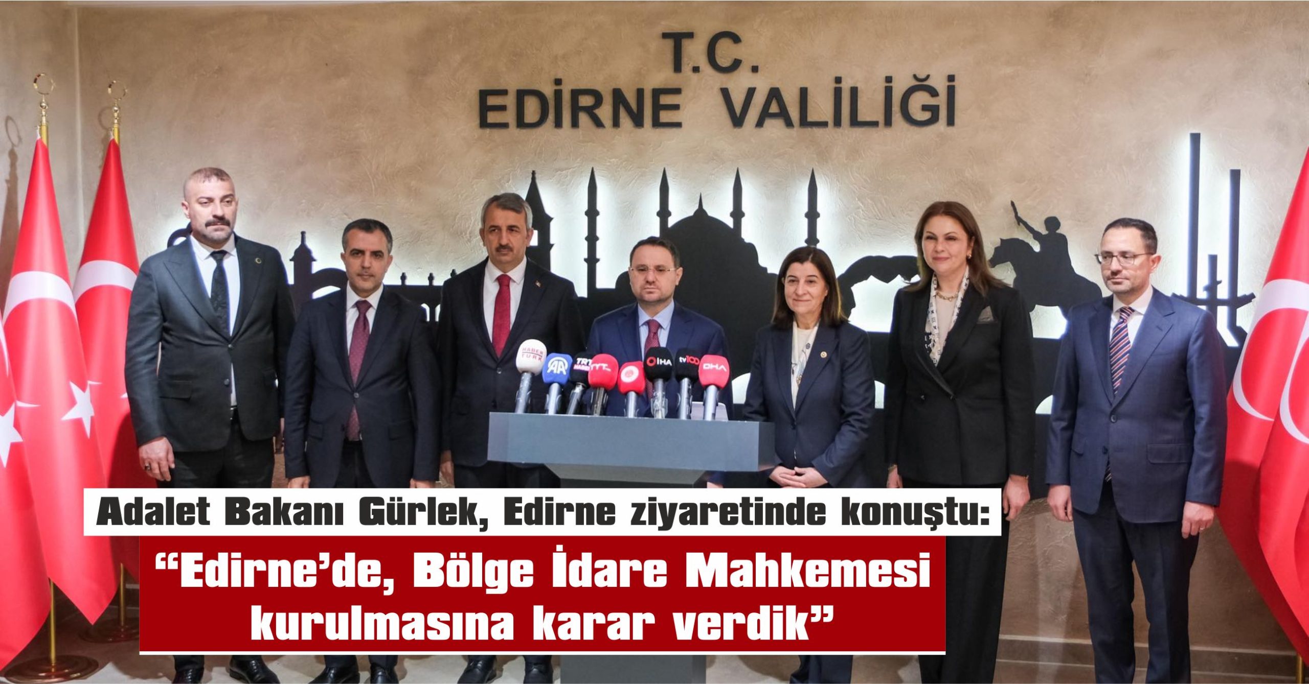 Edirne ile ilgili müjde veren Gürlek, şunları söyledi: “Edirne’de, Bölge İdare Mahkemesi kurulmasına karar verdik. Bu konuda gerekli adımları hem personel genel müdürlüğü, hem de Hakimler ve Savcılar Kurulu olarak atacağız. İnşallah Edirne’mize Bölge İdare Mahkemesi yaz kararnamesiyle faaliyete geçirilecek.”