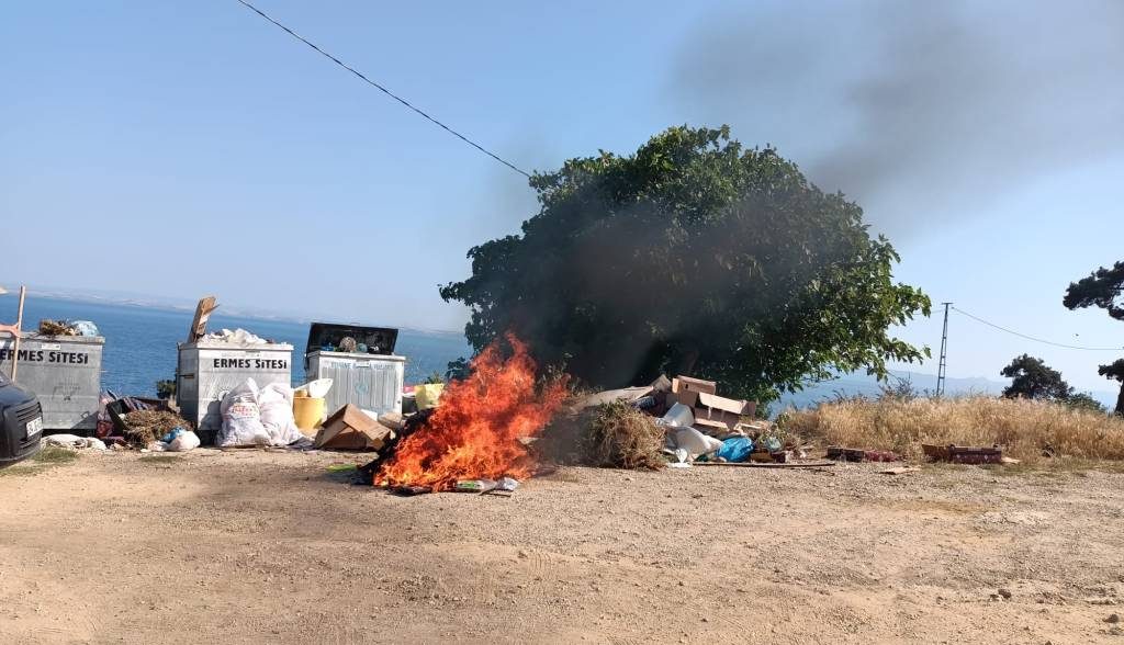 Çöplerin konteynerlerden taşmaya başlaması üzerine yazlıklardaki vatandaşlar çareyi, çöpleri yakmakta buldu.