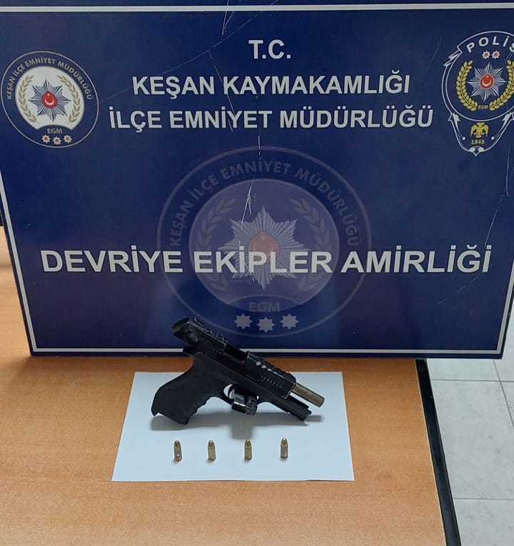 Keşan İlçe Emniyet Müdürlüğü ekipleri tarafından durdurulan araçta, sürücü hem alkollü çıktı hem de tabanca ele geçirildi.