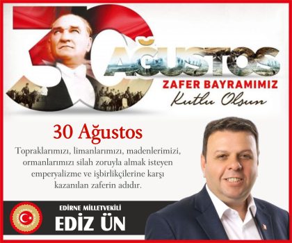 Edirne Milletvekili Ediz Ün, 30 Ağustos Zafer Bayramı nedeniyle mesaj yayımladı.