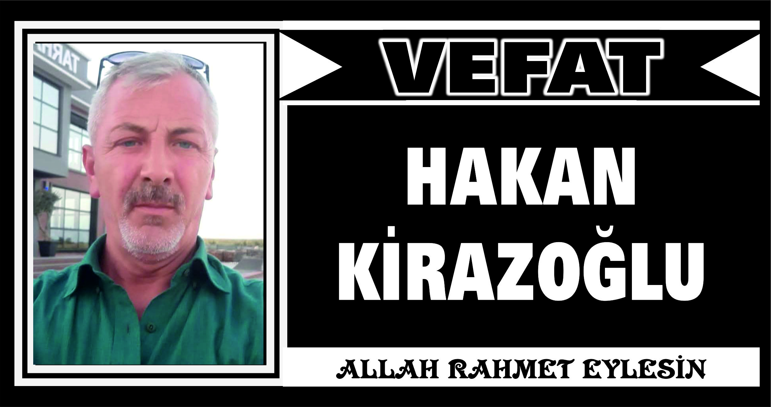 Büyük Cami Mahallesi halkından, merhum Tevfik Kirazoğlu ve Ayşe Kirazoğlu’nun oğulları, Ruşen Sevil ve Fatma Sevil’in damatları, Yeliz Kirazoğlu’nun eşi, İldem Kirazolu’nun babası, Arif ve Harun Kirazoğlu ile Berak Kuru’nun ağabeyleri olan HAKAN KİRAZOĞLU (58) vefat etti.HAKAN KİRAZOĞLU, bugün ikindi...