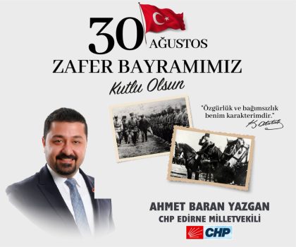 CHP Edirne Milletvekili Ahmet Baran Yazgan, 30 Ağustos Zafer Bayramı’nın 103. yılı nedeniyle yazılı açıklama yaptı.